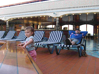 The Ear Infection - Perhaps due to the slight cold she travelled with, we wound up in the infirmary with Alice 2 days in a row. She was eventually diagnosed with and ear infection, given antibiotics, and recovered in time to enjoy the rest of the cruise. She especially loved the fountains on the ship. She also loved playing in the Camp Carnival playroom (during toddler time)